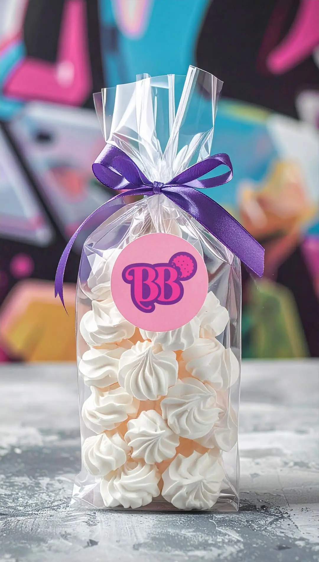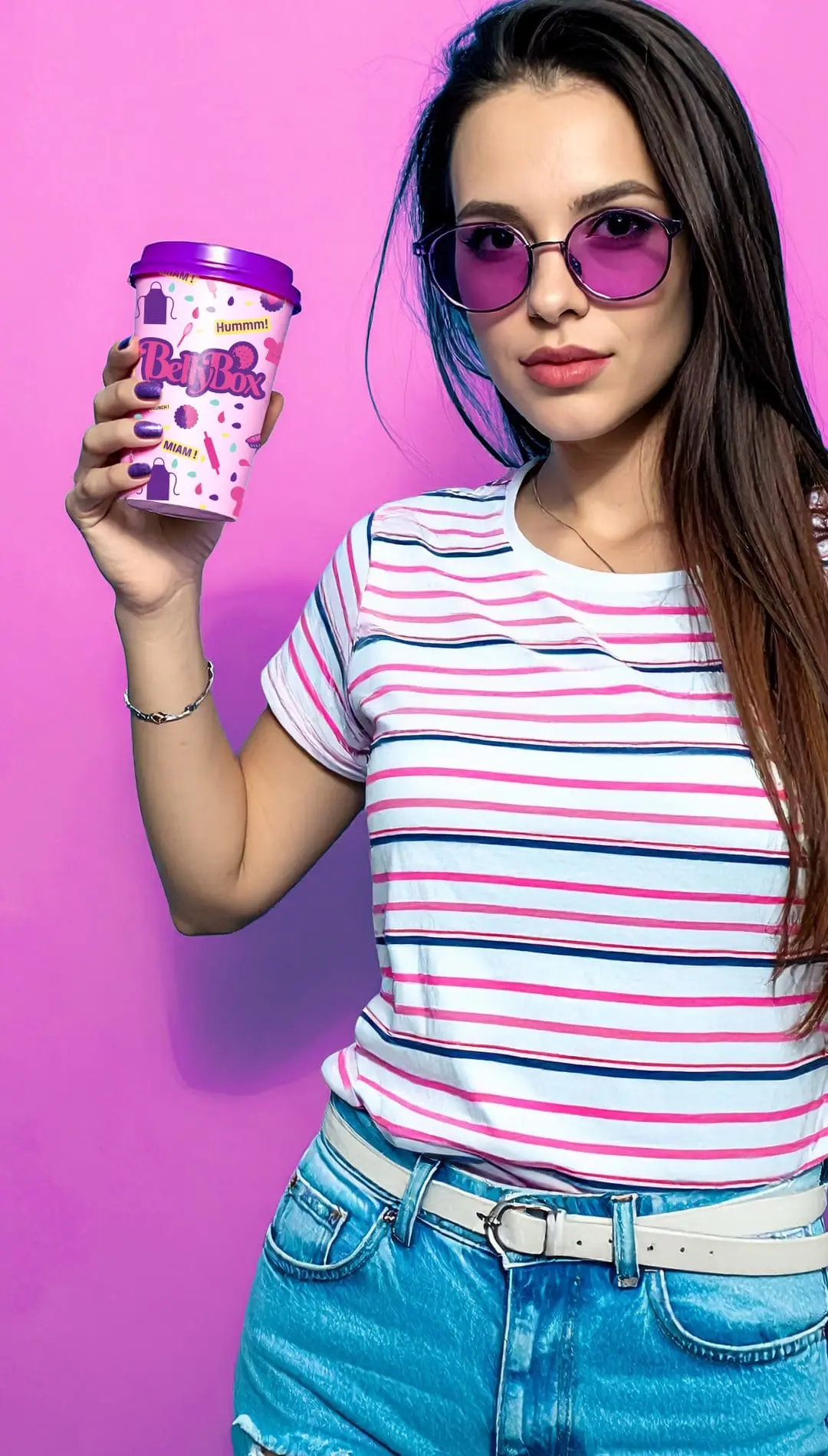 Les éléments graphiques, puisés dans l’univers de la pâtisserie et de la biscuiterie, insufflent une extravagance colorée qui crée du rythme et de la dynamique. Leur combinaison capte l’œil et souligne la créativité ainsi que la singularité de Bellybox, une marque qui refuse de rentrer dans le moule de la pâtisserie traditionnelle. Les onomatopées, quant à elles, viennent imprégner l’ensemble d’une dimension à la fois gourmande et espiègle, avec une pointe de nostalgie empruntée à l’univers de la bande dessinée.